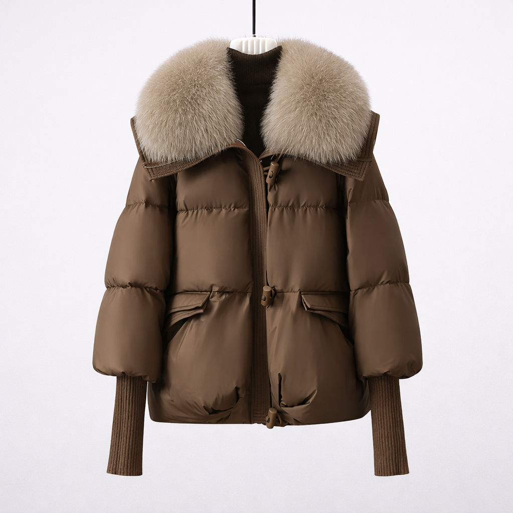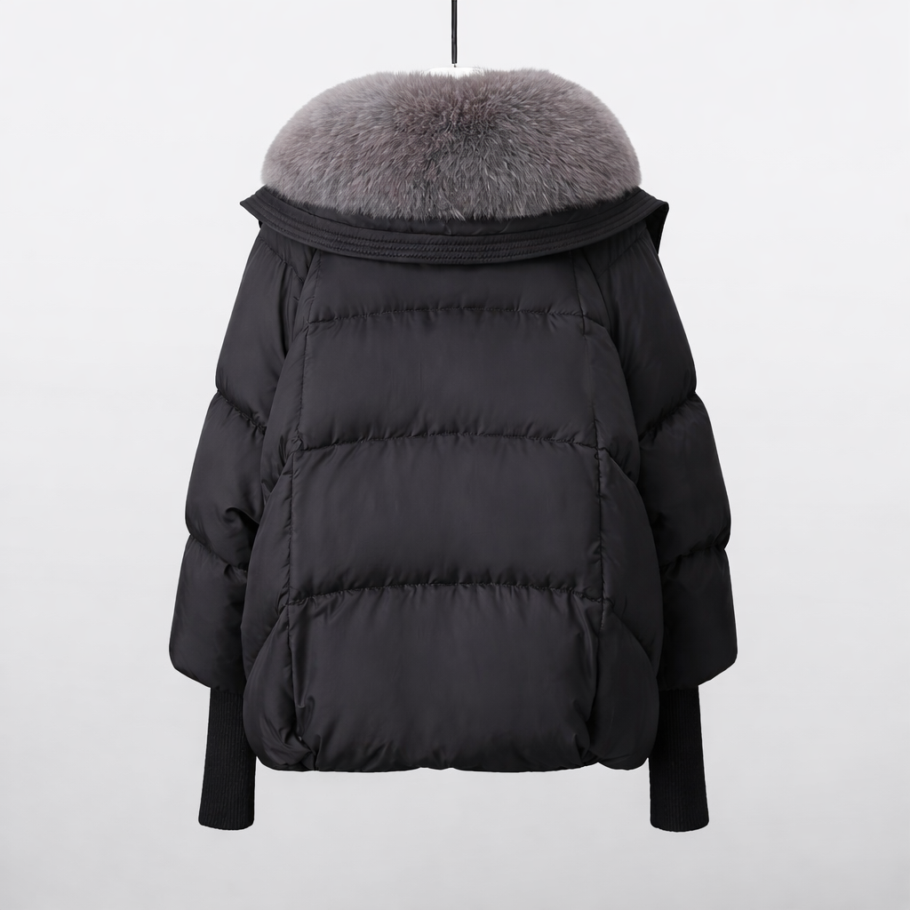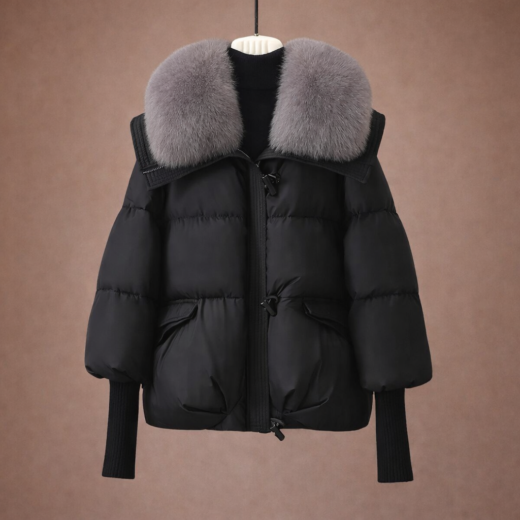 - Plush faux-fur trim on collar and cuffs for a soft, luxury feel